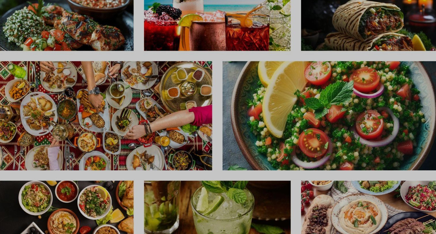 Een rijke selectie om samen te delen: warme soep, romige hummus, pittige aardappelen, paprikawalnootdip en frisse peterseliesalade, gevolgd door een royale selectie van vlees van de grill — gemarineerde kipspies, kippendij, kippenvleugels, gekruide gehaktspies, lamskoteletten en gegrilde lamsblokjes — geserveerd met geurige rijst met noten en krokant Libanees brood, afgesloten met een verfijnd dessert — een complete en smaakvolle ervaring.
